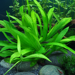 A Helanthium bolivianum 'Quadricostatus' é uma planta de aquário muito popular, originária da América do Sul e Central, conhecida pela sua resistência e facilidade de cultivo. Com as suas folhas verde-claras vibrantes, cresce em forma de roseta e propaga-se rapidamente por estolhos (runners), sendo ideal para formar um tapete no primeiro ou médio plano do aquário.